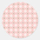 Round sticker design featuring pink and white