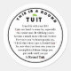 Das Zögern ist vorbei! Dieser Aufkleber enthält einen "Round Tuit", der vom Gründer von Tiny Turtle Life entworfen wurde. Es ist perfekt für eine lange Liste von Dingen, die man abschließen kann, wenn man einen Round Tuit bekommt. Nun, jetzt wird jeder einen haben! Das Rätsel ist gelöst. Sie können einen an Freunde, Familie und Mitarbeiter schicken, um ihnen zu helfen, ihre Ziele zu erreichen und ihr geschäftiges Leben auszugleichen. Keine Entschuldigungen mehr. Schicken Sie das Geschenk der Bilanz heute! Der Aufkleber lautet: "Dies ist ein Rundrohr. Wähle es mit deinem Leben! Tuits sind schwer zu erreichen, besonders die runden. Es wird Ihnen helfen, ein viel effizienterer Arbeiter zu werden. Jahrelang haben Leute gesagt: "Ich mache das, wenn ich einen runden Tuit bekomme." Jetzt, wo man also eins hat, kann man all diese Dinge, die man beiseite legt, vollenden, bis man einen runden Tuit got."