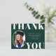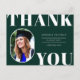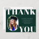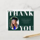 Rounded Front Foto Rahmen, Senior Class Abschluss danke Ihnen Postcard. Solid grüner Hintergrund, weißer Fetttyp "DANK YOU" und Textemodelllinien für den Namen, die Jahrgangsklasse und die Schule des Absolventen.