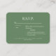 Viridian Wedding RSVP Card. Abendessen. Abgerundet. Weißer Text.