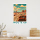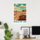 Hit the open road with this iconic Route 66 Travel Art Poster! Rendered in a nostalgic, graphic style, this piece captures the romance of the legendary "Main Street of America," featuring the endless desert highway, towering red mesas, and a classic convertible.
