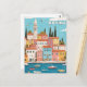 Diese Reise-Postkarte zeigt eine skurrile Abbildung, die Rovinjs Stadtbild darstellt. Es ist eine großartige Postkarte für Reisende nach Rovinj, Kroatien.
