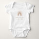Dieses Mädchen boho Regenbogenschwangerschaft Ankündigung Baby Bodysuit aus der Rowan Collection ist perfekt für eine einfache Babydusche und für Baby Ankündigung Fotos. Dieses niedliche minimalistische Design besticht durch ein einzigartiges, helles Rosa und einen goldenen Regenbogen. Personalisieren Sie Ihren Babykarosserieanzug mit dem Vor- oder Nachnamen des Babys und dem Fälligkeitsdatum.
