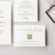 ROWAN Botanical Modern Minimalist, wedding rsvp card with QR Code. Trendy minimalist citrus moss green typography template.