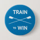 Eine blaue Schaltfläche mit Text und Bild in Weiß. Einfach, aber effektiv, inspirieren und zu motivieren. Das Bild ist von den gekreuzten Rudern mit dem Titel "TRAIN TO WIN". Welchen anderen Grund gibt es?