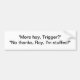 Autoaufkleber mit dem Zitat "" mehr Heu, Auslöser?" "Kein Dank, Roy, werde ich angefüllt! ""