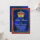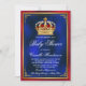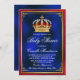 Königliche Babydusche mit hübscher Rot- und Goldkrone auf einem schönen königsblauen, roten und goldenen Hintergrund. Sie können den Text nach Bedarf für Ihre Veranstaltung ändern. Drucken Sie auf Hochglanzpapier für beste Ergebnisse.