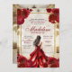 Royal Ballroom Burgundy Red Quinceanera Einladung, Rose Rot und Gold Königliche Prinzessin in Ballgown Quinceanera Einladung, Mis Quince Anos de Invitaciones