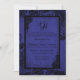 Gotische schwarze Spitze über königsblauem Grunge Hintergrund mit monogramm formaler Einladungskarte für Hochzeiten.