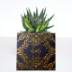 Elegantes dekoratives Fliesendesign mit goldenen barocken Ornamenten auf dunkelblauem Hintergrund.