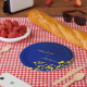 Elegante, schlicht aber kostengünstig und trendig personalisierte königsblau und gelb golden floralen geschmückt Hochzeitsdekor Party Teller.