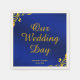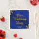 Eleganter und einfacher königsblau und gelb goldgelber floraler verzierter Cocktail Hochzeitsnapkins. Personalisieren Sie Ihre eigene Nachricht.