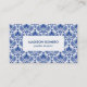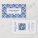 Royal Blue and White Damaskas Muster QR-Code Visitenkarte