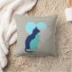 Zwei Katzenwelten, eine Aqua, die andere königsblau und zwei graue und aqua-blaue Silhouetten auf Zickzack, gestreiften grauen Hintergrund. Dieses hübsche Katzendesign Kissen ist perfekt für jeden, der Katzen Liebe, sieht gut aus im Schlafzimmer, Wohnzimmer, Rec-Zimmer, Spielzimmer!