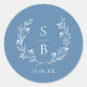 Royal Blue Botanical Monogram Wreath Wedding Runder Aufkleber