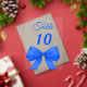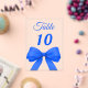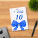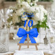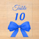 Personalize and your table numbers one by one. A clear background decorated with a large royal blue colored bow.