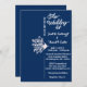 Lassen Sie sich mit dieser atemberaubenden königsblauen und weißen Einladung mit extravaganten Script-Schriftart und einer weißen Blume den ersten Eindruck vermitteln. Passen Sie diese Hochzeit mit Ihren eigenen Informationen an, um sie zu Ihrem eigenen zu machen.