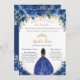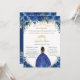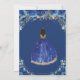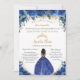 Royal Blue Floral Dama Request Gold Quinceañera XV Einladung