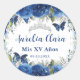 Royal Blue Floral Rose Schmetterlinge Silberkrone Runder Aufkleber
