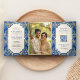 Royal Blue Gold Lace QR Code Foto Indian Wedding Dreifach Gefaltete Einladung