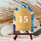 Suchen Sie nach marineblau und goldfarbenem Acryltischschild? Schauen Sie sich unsere Royal Blue Gold Wedding Acrylic Arch Tischnummer an! Dieses atemberaubende, blaue und gelbe Hochzeitsschild zeigt einen digitalen Goldeffekt auf dem Rahmen mit einem wunderschönen, eleganten marokkanischen Hintergrund. Dieses farbenprächtige Acryl-Tafelschild strahlt Eleganz aus und ist ideal für Paare, die elegante Acryl-Tischnummern für Hochzeiten suchen. Eine farbenfrohe Tischnummer!