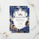 Royal Blue Golden Tiara Floral Quinceañera Save The Date