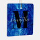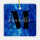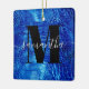 Erstellen Sie Ihren eigenen mädchenhaften personalisierten Namen und mit Monogramm quadratische Keramik Ornament mit ihrem Foto auf der Rückseite. Royal Blue Imitats in Digital Art Reptilien Ledergrafik. Schwarz-Weiß zeitgenössisches Monogramm mit elegantem Kalligraphiedesign.