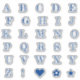 Fun Royal Blue Schriftart Typografie Monogramm Buchstaben Alphabet Aufkleber Pack für die Monogrammatik, Personalisierung, Anpassung, Notenschrift, Zeitschriften, Notizbücher, und mehr. Dieses Set beinhaltet auch einen Ausrufepunkt, Herz, Blume und Stern.