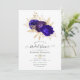 Königlich blaue und lila Blumendusche Einladungskarte mit goldenem Akzent, die auf Ihre Veranstaltungsspezifikationen abgestimmt ist.