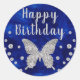 Royal Blue Paintbrush Silber Butterfly Geburtstag Runder Aufkleber