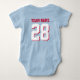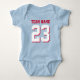 Niedlicher Bodysuit für Kleinkinder. Mama und Liebe Sport. Es ist nur natürlich, dass das Baby auch sollte. Niedlicher Babybodyanzug in königsblau, rot und weiß. Sie können den Namen und die Spielernummer auf der Vorder- und Rückseite des Trikots anpassen. Nicht nur für Fußballfans. Jeder Sportfans wird dieses Design schätzen. Baseball, Basketball, Fußball, Eishockey und vieles mehr.
