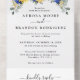 Elegante und moderne rustikale Hochzeitseinladung mit hellgelben Sonnenblumen, königlich blauen Pfannenbäumen, Babyatmen, Gipsabila Blumenrahmen / Kranz mit Eukalyptus-Blätter. Weitere passende Designs und Variationen finden Sie in meinem "Blitzweddingpaperie" Shop. Und zögern Sie nicht, mich für weitere Anpassungen oder Match-Artikel zu kontaktieren.