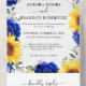 Elegante und moderne rustikale Hochzeitseinladung mit hellgelben Sonnenblumen, königlich blauen Pfannenbäumen, Babyatmen, Gipsabila Blumenrahmen / Kranz mit Eukalyptus-Blätter. Weitere passende Designs und Variationen finden Sie in meinem "Blitzweddingpaperie" Shop. Und zögern Sie nicht, mich für weitere Anpassungen oder Match-Artikel zu kontaktieren.