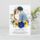Die elegante und moderne rustikale Hochzeitskarte Save the Date mit hellgelben Sonnenblumen, königlich blauen Pfannenbäumen, Babyatmen, Gipsabila Blumenrahmen / Kranz mit Eukalyptus-Blätter. Weitere passende Designs und Variationen finden Sie in meinem "Blitzweddingpaperie" Shop. Und zögern Sie nicht, mich für weitere Anpassungen oder Match-Artikel zu kontaktieren.