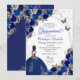 Royal Blue Silver Butterfly Princess Quinceanera Einladung