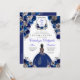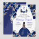 Royal Blue & Silver Floral Elegante Quinceañera Einladung