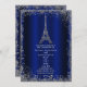 Royal Blue Silver Glitzer Eiffel Tower Wedding Einladung