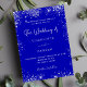 Ein königsblauer Hintergrund, mit Imitaten verziert silbernen Glitzer, Glitzern. Personalisieren Sie Ihre Namen und Details und fügen Sie diese hinzu. Zurück: Ein qr-Code. Fügen Sie Ihre Hochzeitswebsite url für Hochzeitsdetails und UAWG.