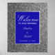 Eleganter, schick-luxuriöser silberner Glitzer und königsblaues Hochzeitsplakat mit moderner Kalligraphie-Schrift.