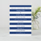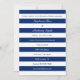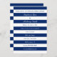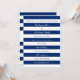 Einladungen zum Abendessen mit Probe in Blau und Weiß. Royal blau-weiß gestreiftes Muster.