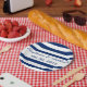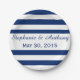 Königlich blaue und weiße Streifen Hochzeitspapier Teller. Royal blau-weiß gestreiftes Muster.
