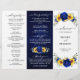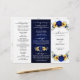 Royal Blue Sunflower Wedding Dreifach Programmkart