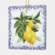 Dieses hübsche Ornament besticht durch üppige Zitronen, die von einer königsblauen Filigrangrenze umgeben sind! Gut, um das Haus zu jeder Jahreszeit zu haben! Dieses hübsche Design im europäischen Stil besticht durch üppige Zitronen, die von einer kleinen Grenze umgeben sind! Ein Haufen heller, reifer Zitronen auf einem Ast umgeben von großzügigen grünen Blätter. Eine Grenze von königlich marineblauen Filigree umgrenzt das Design. Eine perfekte Touch für Ihre italienische oder französische Küche mit inspirierter Küche! Personalisieren Sie auch den Rücken! Dies ist ein wunderschönes Geschenk Gunst für jedes Party zu jeder Jahreszeit!