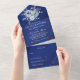 Royal Blue und Silver Floral Quinceñera All In One Einladung