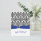 Royal Blue, White, Black Damask Repcard RSVP Karte