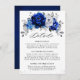 Elegante, königsblau-silberne Thema Hochzeit Details Karte mit elegantem Bouquet von königsblau, Marine, Silber, reine Weiß Rose Knospen und Salbei grün eucalyptus Blätter. Bitte kontaktieren Sie mich für Hilfe bei der Anpassung oder wenn Sie ein anderes Produkt mit diesem Design benötigen.