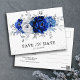 Royal Blue White Silver Floral Save the Date Postkarte