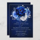 Royal Blue White Silver Metallic Floral Wedding in Einladung