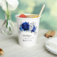 Eleganter, königsblau-silberfarbener Hochzeitspapier-Becher mit elegantem Bouquet von königsblau, Marine, silber, reine weiße Rose Blume Knospen und Salbei grün Eukalyptus-Blätter. Bitte kontaktieren Sie mich für Hilfe bei der Anpassung oder wenn Sie ein anderes Produkt mit diesem Design benötigen.