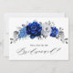 Elegantes königsblau weißes Silbermotiv werden Sie meine Bridesmaid-Vorschlagskarte mit elegantem Bouquet von königsblauen, Marine, Silber, reine Weiß-Rose-Knospen und schlaugrünen Eukalyptus-Blätter. Bitte kontaktieren Sie mich für Hilfe bei der Anpassung oder wenn Sie ein anderes Produkt mit diesem Design benötigen.